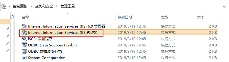 在控制面板中选择“系统和安全”,再选择“管理工具”,如下图:点击上图红圈部分即可打开IIS管路器